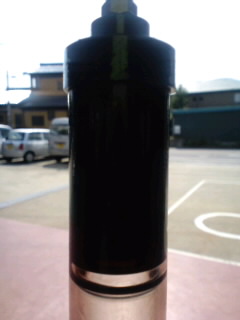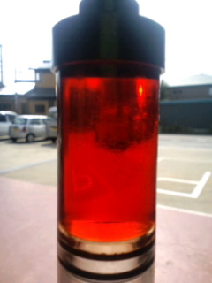 左 8万キロ走行でATFを全く交換していない車から抜いたATF、汚れが酷過ぎて真っ黒です。