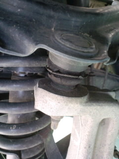 ま~予定通りなんですけれどブレーキパットの残量が少ない、さらに整備を進めていく中で、アッパーアームのボールジョイントのブーツが損傷しているのを発見、国産車のつもりでついでに交換する旨をブレーキパットの件と一緒にお客様に連絡し了解の上交換という事に、パットとブーツを注文しました。